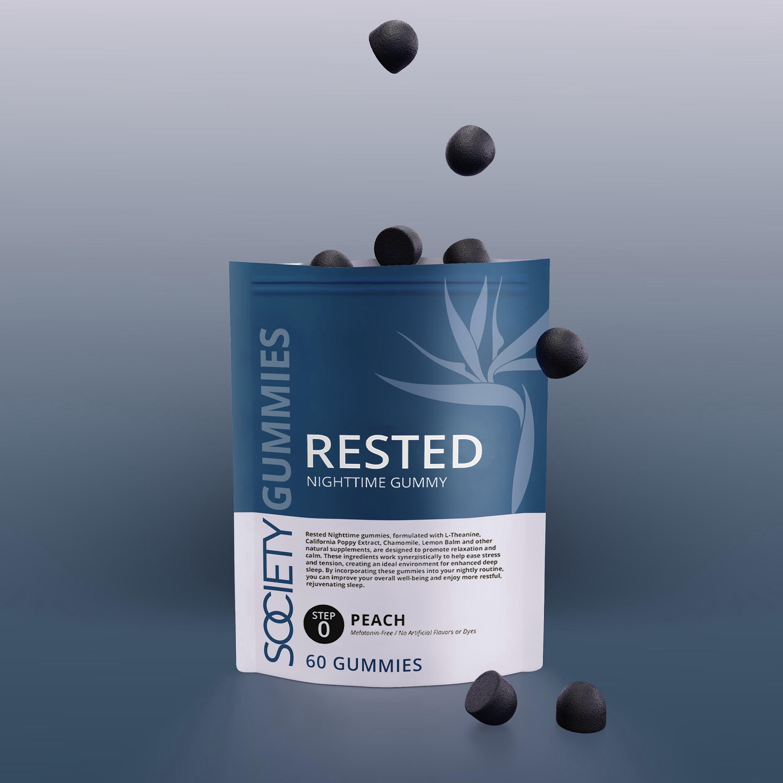Rested Nighttime Gummies, formulated with L-Theanine, California Poppy Extract, Chamomile, Lemon Balm and other natural supplements, are designed to promote relaxation and calm. These ingredients work synergistically to help ease stress and tension, creating an ideal environment for enhanced deep sleep. By incorporating these gummies into your nightly routine, you can improve your overall well-being and enjoy more restful, rejuvenating sleep.